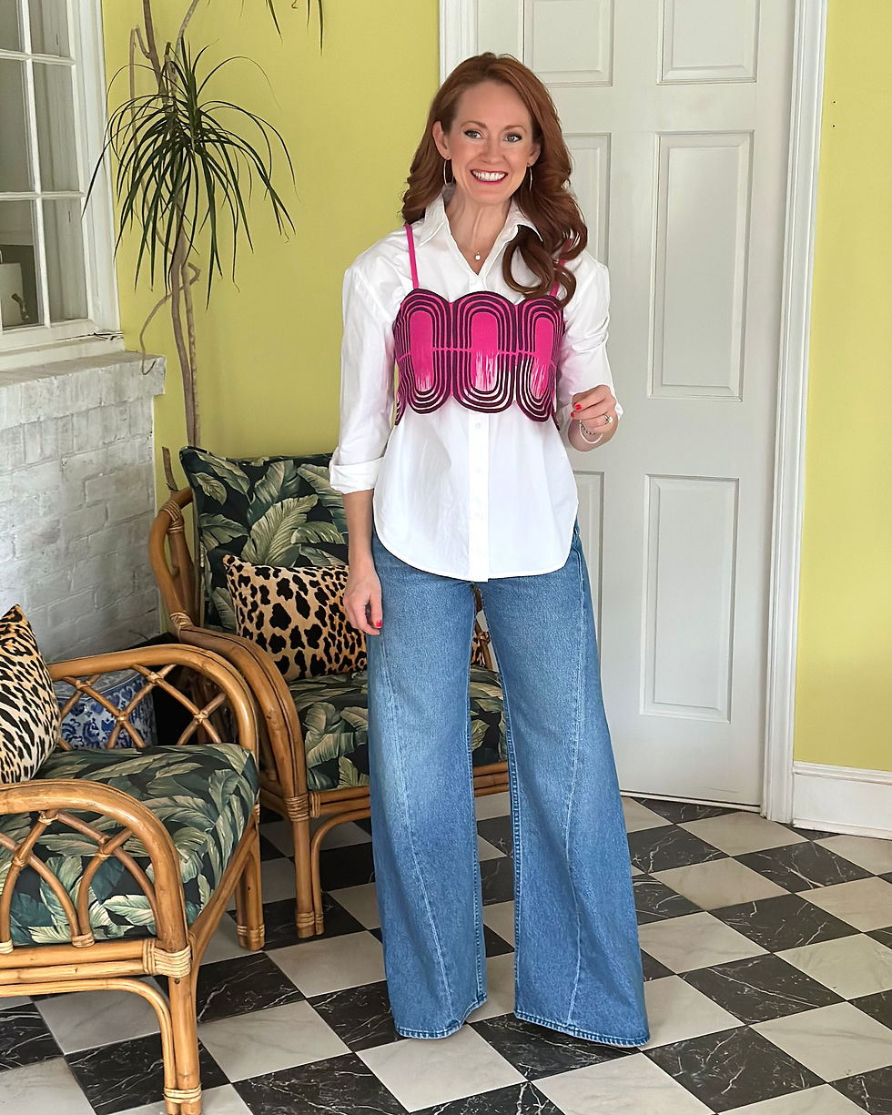 But you can wear these pieces outside of vacation ... you just have to get creative! I found this pink crop top at a high end consignment sale and I just love it. I like to think about all the ways I'm going to style pieces in my wardrobe before i purchase them.