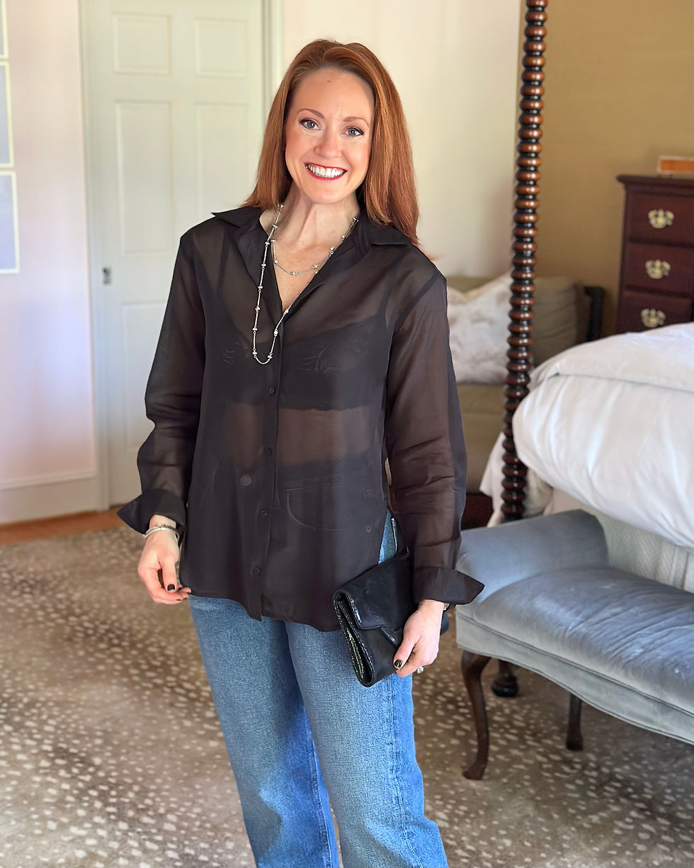 Another option is a sheer top. You can go bold with just a nice bra underneath or a tank for more coverage.